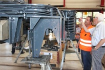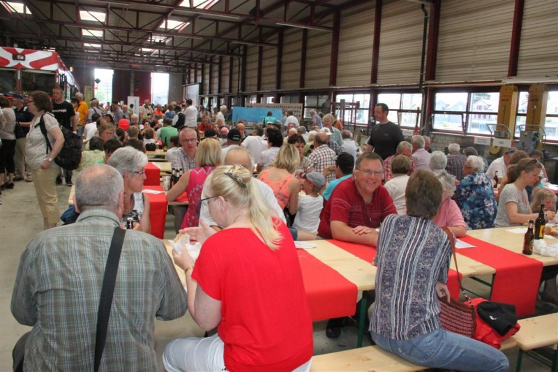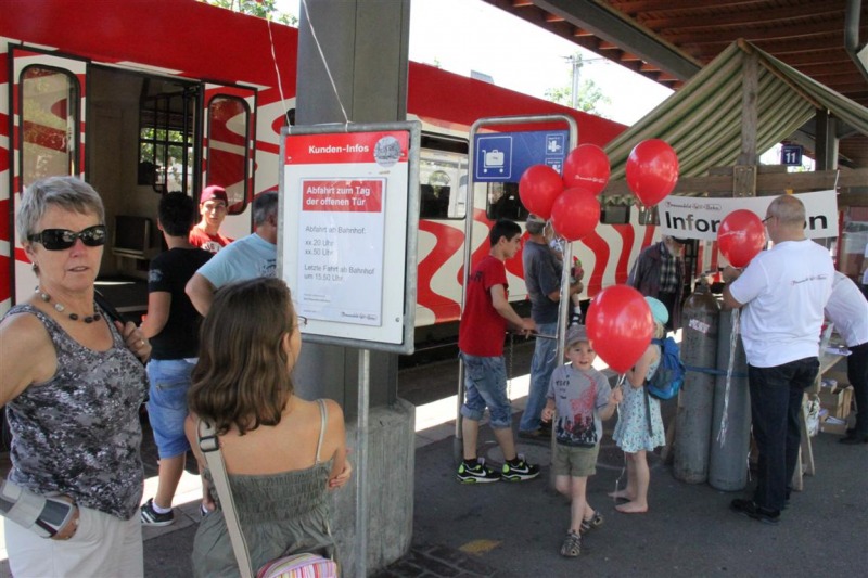 Ein historischer Rückblick gehörte ebenso zum Programm, wie auch die Präsentation der neuen Fahrzeuge mit Bildern und Modellen. Kinder bekamen bei den Führerstandfahrten schnell glänzende Augen und beim schweisstreibenden Schienenvelofahren sofort warme Hände. Technikbegeisterte Erwachsene diskutierten am echten Objekt schon einmal die Vor- und Nachteile der einstigen und heutigen Drehgestelle. Und wer wissen wollte, wie der Zug der Zukunft aussehen wird, konnte bei einer Präsentation von «Stadler Rail» einen Blick auf den Computer-Monitor werfen. Eine Malecke für die Kleinsten und eine grosse Festwirtschaft in der angenehm kühlen Halle sorgten dafür, dass für Aktivitäten und Ruheplätze für alle gesorgt war.