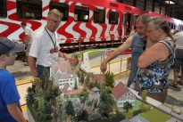 Sogar auf den neuen Zweit- und Erstklass-Sitzen, mit denen die Passagiere zukünftig fahren werden, konnte man probeweise sitzen. Diese müssen sehr bequem gewesen sein, verliess doch kaum jemand, der mal darauf sass, die Sitzgelegenheit so schnell wieder. Äusserst sehenswert war auch die flächenmässig riesige Miniatur-Eisenbahn, welche die ganze Frauenfeld-Wil-Bahn massstabgetreu in ihrer ganzen Länge zeigte. Da sah man die Leute die ganze Strecke entlang stehen und sich angeregt über das eine oder andere Detail unterhalten. Ein alter Frauenfelder, der sinnierend vor dem Bahnhofplatz in Frauenfeld stand, erklärte nach eingehender Betrachtung: «Da stimmt einfach alles.» Das hätte auch das Fazit über diesen Tag sein können, schätzte doch FWB-Mediensprecher Alexander Liniger, dass «es sicherlich um die 2500 oder mehr Besucher sein dürften». Tatsächlich schien diese Zahl nicht zu hoch gegriffen, denn sämtliche Stände waren gut besucht, die Führungen ausgebucht und auch die Giveaways wie Luftballone und Kugelschreiber fanden «reissenden Absatz», wie eine Standmitarbeiterin erklärte. Auch der Wiler Stadtpräsident und FWB-Verwaltungsratspräsident Bruno Gähwiler zeigte sich vom Besucheransturm begeistert: «Sicherlich spielt auch das Wetter eine grosse Rolle, dass die Halle so voll ist, aber ich denke auch, dass das <Wiler-Bähnli> einfach ein beliebtes Verkehrsmittel ist, mit dem sich die Bevölkerung zwischen Frauenfeld und Wil einfach voll identifiziert.»