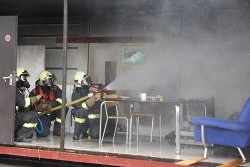 MATZINGEN. Alles war fürs grosse Fest rund ums Feuerwehrdepot angerichtet: die Tribüne stand, das Tanklöschfahrzeug (TLF) war auf Hochglanz poliert und festlich geschmückt, und Hunderte von Schaulustigen bevölkerten bereits lange vor dem Festakt um 11 Uhr das Areal. Im Rahmenprogramm konnte man einem Zimmerbrand im Brandcontainer ebenso beiwohnen wie auch einem Einsatz der Jugendfeuerwehr Frauenfeld. Eine Beiz, eine Bar und Info-Stände von Partnerorganisationen wie Polizei und Sanität rundeten das Ganze ab. Und da das Wetter bis in den späten Nachmittag hinein hielt, riss auch der Besucherstrom nicht ab.